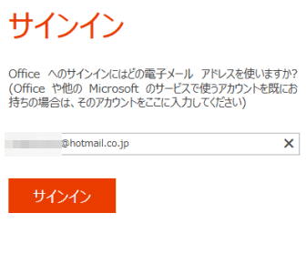 次の画面を表示しますので、「Microsoft アカウント」とパスワードを入力後、「サインイン」をクリックします。